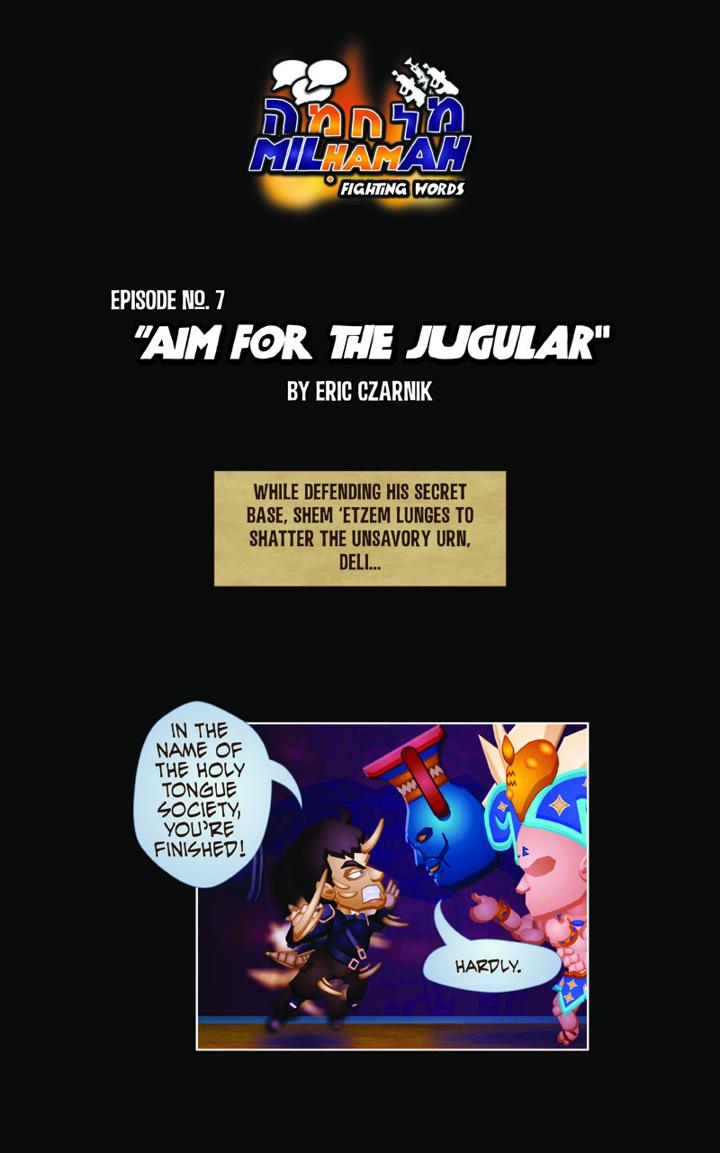 In “Milhamah: Fighting Words” Episode 8, Shem ‘Etzem is faced with that same sort of evil from the Bavel Empire’s agent, Deli. Deli puts Shem up against the wall and then questions Shem’s loyalty to his own cause, the Holy Tongue Society.