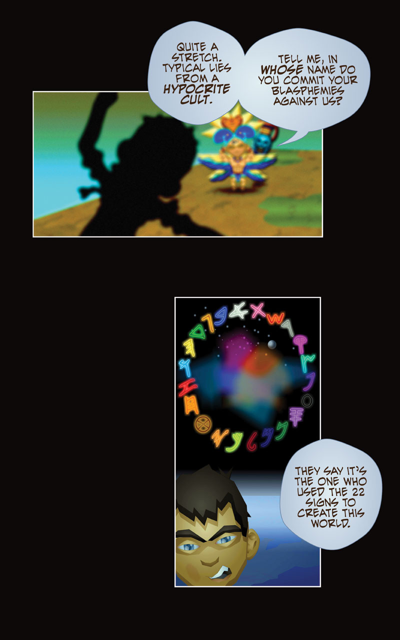 So as the comic says, Deli permuted or switched his powers around to heal himself through a rebirth. Of course, since he’s from Bavel, he does this through the power of trickery and evil. Next episode you’ll learn the difference between the Holy Tongue’s Society’s truth-guided blessings and Bavel’s manipulative curses, and why it matters.